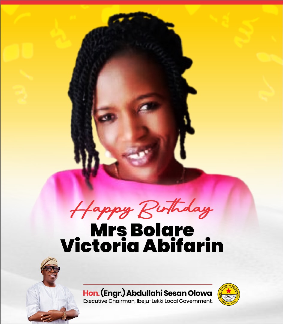 The Executive Chairman of Ibeju-Lekki Local Government, Hon. Abdullahi Sesan Olowa, has extended heartfelt birthday felicitations to the Council’s Office Accountant and Record Keeper, Mrs. Bolare Victoria Abifarin, describing her as a diligent and exemplary public servant.