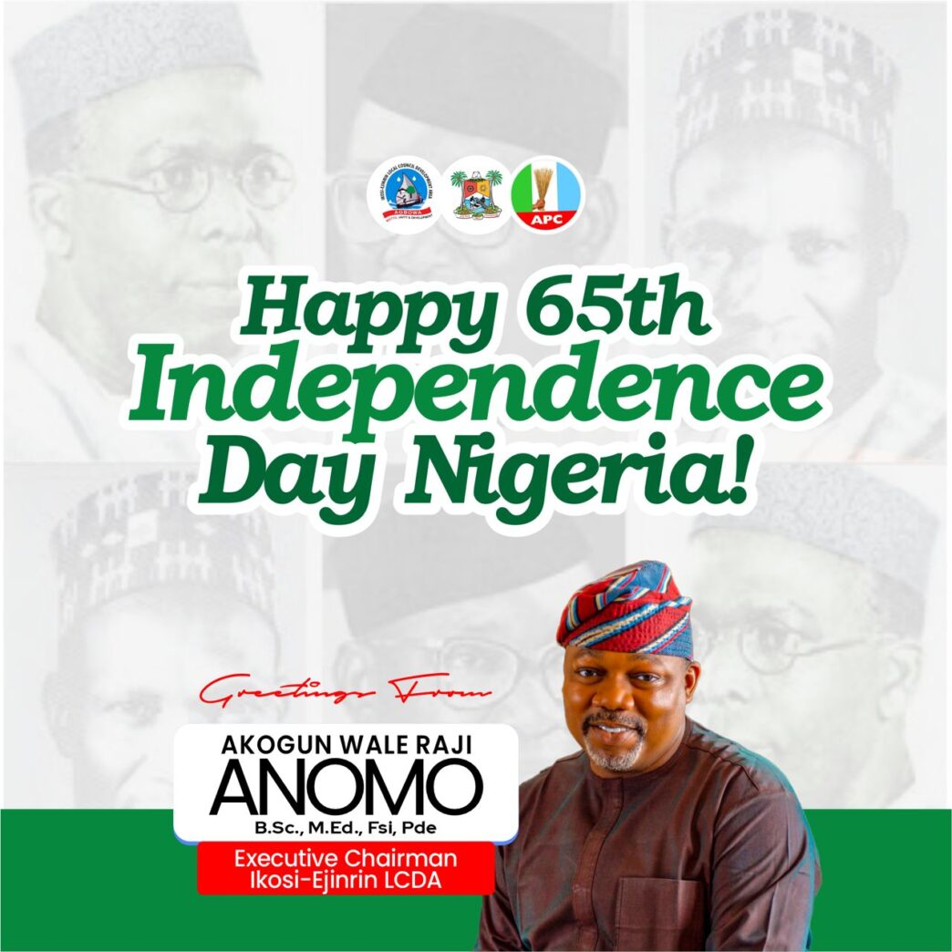 The Executive Chairman of Ikosi-Ejinrin Local Council Development Area (LCDA), Akogun Wale Raji Anomo, has felicitated with Nigerians on the occasion of the country’s 65th Independence Anniversary, urging citizens to embrace unity, patriotism, and continued support for the administration of President Bola Ahmed Tinubu.
