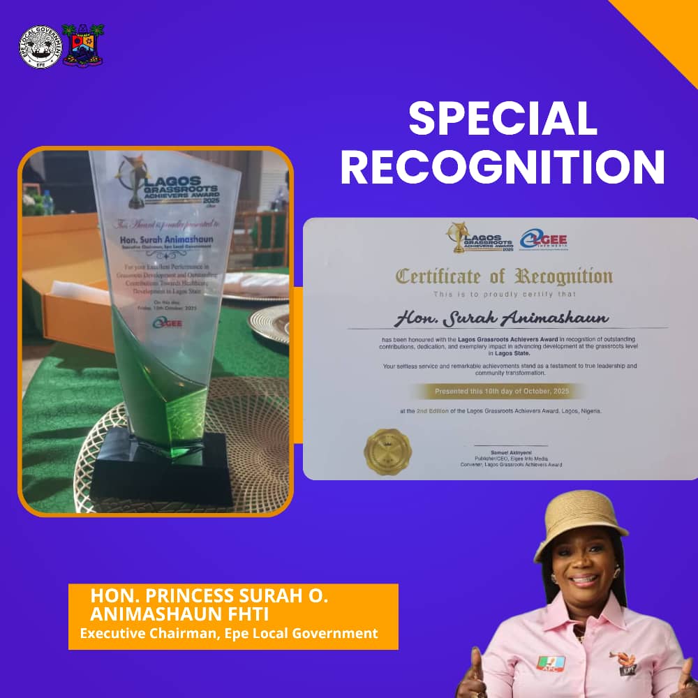 In her heartfelt acceptance speech, Princess Animashaun dedicated the award to the resilient people of Epe, whom she described as the “heartbeat” of her administration’s success.